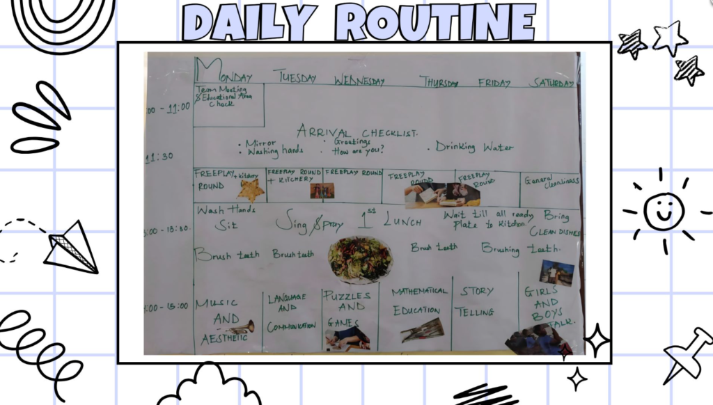 Dieses Bild zeigt einen kleinen Einblick in die täglichen Routinen in Ndoto zetu. Jeder Tag ist gefüllt mit Lernen, Lachen und neuen Erfahrungen. Mit deiner Unterstützung können wir ihnen eine stabile, liebevolle Umgebung bieten, in der sie sich sicher entwickeln und entfalten können. So trägst du direkt dazu bei, dass ihre Kindheit voller Chancen und Möglichkeiten ist.